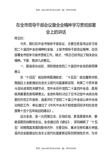在全市领导干部会议暨全会精神学习贯彻部署会上的讲话.docx
