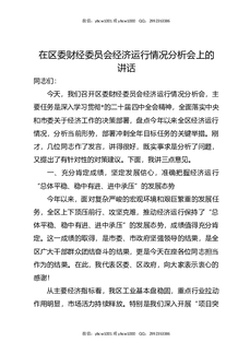 在区委财经委员会经济运行情况分析会上的讲话.docx