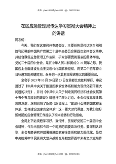 在区应急管理局传达学习贯彻大会精神上的讲话.docx
