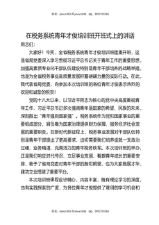 在税务系统青年才俊培训班开班式上的讲话.docx