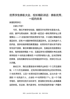 优秀学生表彰大会,校长精彩讲话:表彰优秀,一起向未来.doc