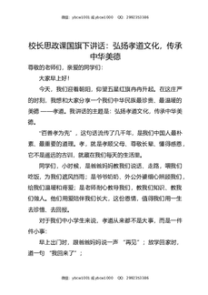 校长思政课国旗下讲话:弘扬孝道文化,传承中华美德.docx