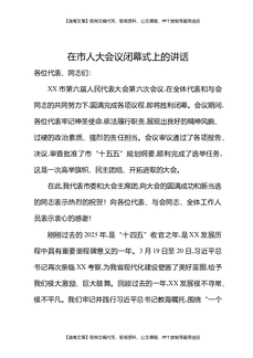 在市人大会议闭幕式上的讲话.docx