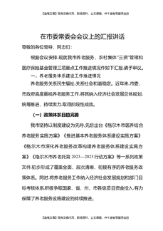 在市委常委会会议上的汇报讲话.docx