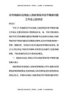 在市残联纠治残疾人残疾等级评定不精准问题工作会上的讲话.docx