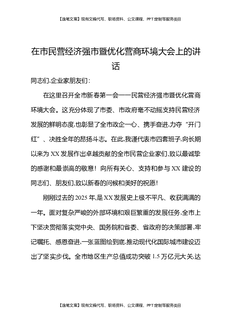 在市民营经济强市暨优化营商环境大会上的讲话.docx