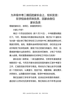 九年级中考二模后的家长会上,校长发言:在学校由老师来负责,回家由各位家长负责.doc