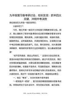 九年级复习备考研讨会,校长发言:抓牢四大关键,冲刺中考决胜.docx
