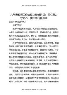 九年级教师工作会议上校长讲话:同心聚力守初心,实干笃行赢中考.docx