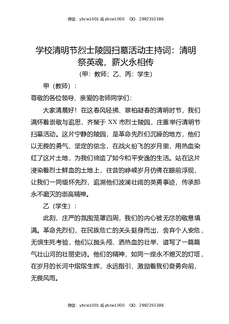 学校清明节烈士陵园扫墓活动主持词:清明祭英魂,薪火永相传.docx