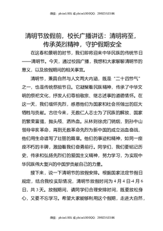 清明节放假前,校长广播讲话:清明将至,传承英烈精神,守护假期安全.docx