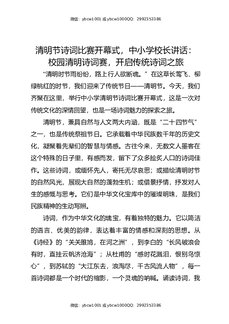 清明节诗词比赛开幕式,中小学校长讲话:校园清明诗词赛,开启传统诗词之旅.docx