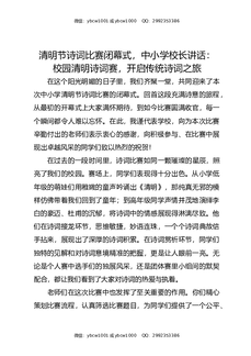 清明节诗词比赛闭幕式,中小学校长讲话:校园清明诗词赛,开启传统诗词之旅.docx