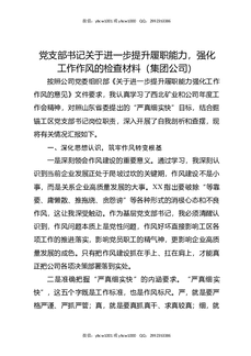 党支部书记关于进一步提升履职能力,强化工作作风的检查材料(集团公司).docx
