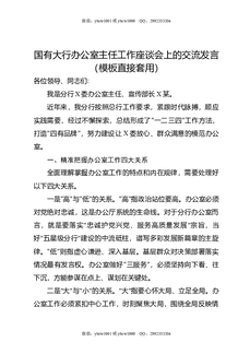 国有大行办公室主任工作座谈会上的交流发言.docx