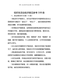组织生活会批评意见参考100条.docx