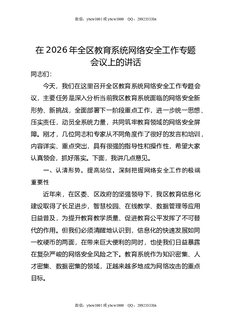 在2026年全区教育系统网络安全工作专题会议上的讲话.docx
