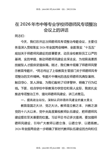 在2026年市中等专业学校师德师风专项整治会议上的讲话.docx