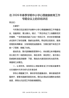 在2026年春季学期中小学心理健康教育工作专题会议上的总结讲话.docx