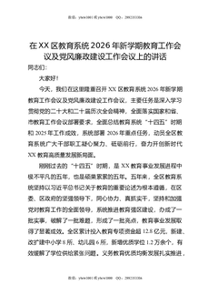在XX区教育系统2026年新学期教育工作会议及党风廉政建设工作会议上的讲话.docx