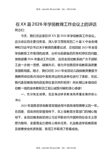 在XX县2026年学前教育工作会议上的讲话.docx
