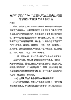 在XX学校2026年全面从严治党暨突出问题专项整治工作推进会上的讲话.docx