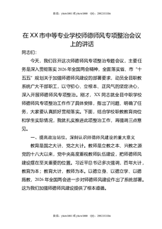 在XX市中等专业学校师德师风专项整治会议上的讲话.docx