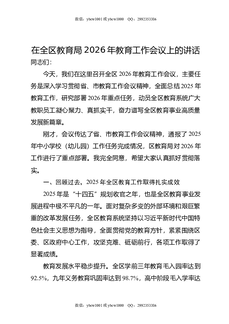 在全区教育局2026年教育工作会议上的讲话.docx