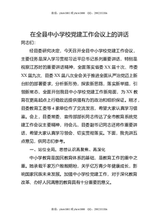 在全县中小学校党建工作会议上的讲话.docx