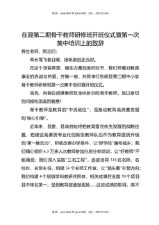 在县第二期骨干教师研修班开班仪式暨第一次集中培训上的致辞.docx