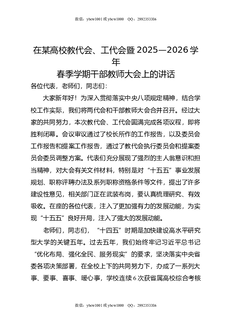 在某高校教代会,工代会暨2025-2026学年春季学期干部教师大会上的讲话.docx