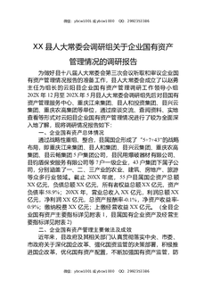 XX县人大常委会调研组关于企业国有资产管理情况的调研报告.docx