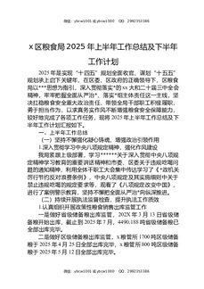 X区粮食局2025年上半年工作总结及下半年工作计划.docx