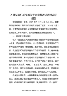 X县文联机关支部关于巡察整改进展情况的报告.docx