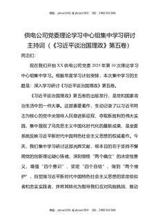供电公司党委理论学习中心组集中学习研讨主持词(《习近平谈治国理政》第五卷).docx