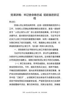 党课讲稿:牢记使命铸忠诚砥砺奋进新征程.docx