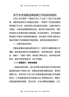 关于全市党建品牌创建工作的成效报告.docx