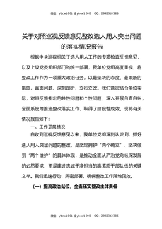 关于对照巡视反馈意见整改选人用人突出问题的落实情况报告.docx