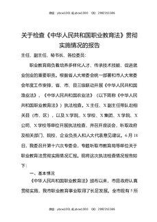 关于检查《中华人民共和国职业教育法》贯彻实施情况的报告.docx
