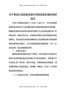 关于集团以高质量党建引领高质量发展的调研报告.docx
