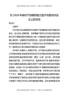 在2026年镇村干部履职能力提升专题培训会议上的讲话.docx