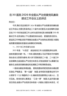 在XX医院2026年全面从严治党暨党风廉政建设工作会议上的讲话.docx