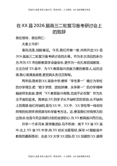 在XX县2026届高三二轮复习备考研讨会上的致辞.docx