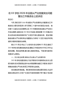 在XX学校2026年全面从严治党暨突出问题整治工作推进会上的讲话.docx