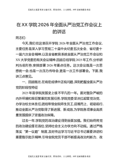 在XX学院2026年全面从严治党工作会议上的讲话.docx