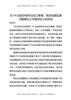 在XX实验学校纠治征订教辅、购买校服乱象问题整治工作推进会上的讲话.docx