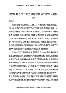 在XX镇2026年党风廉政建设工作会上的讲话.docx