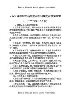 2025年组织生活会批评与自我批评意见集锦(十三个方面142条).docx
