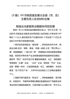 (5篇)XX市高质量发展大会县(市、区)主要负责人发言材料合集.docx