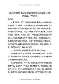 在县教育局2026届高考备考视导调研工作总结会上的讲话.docx
